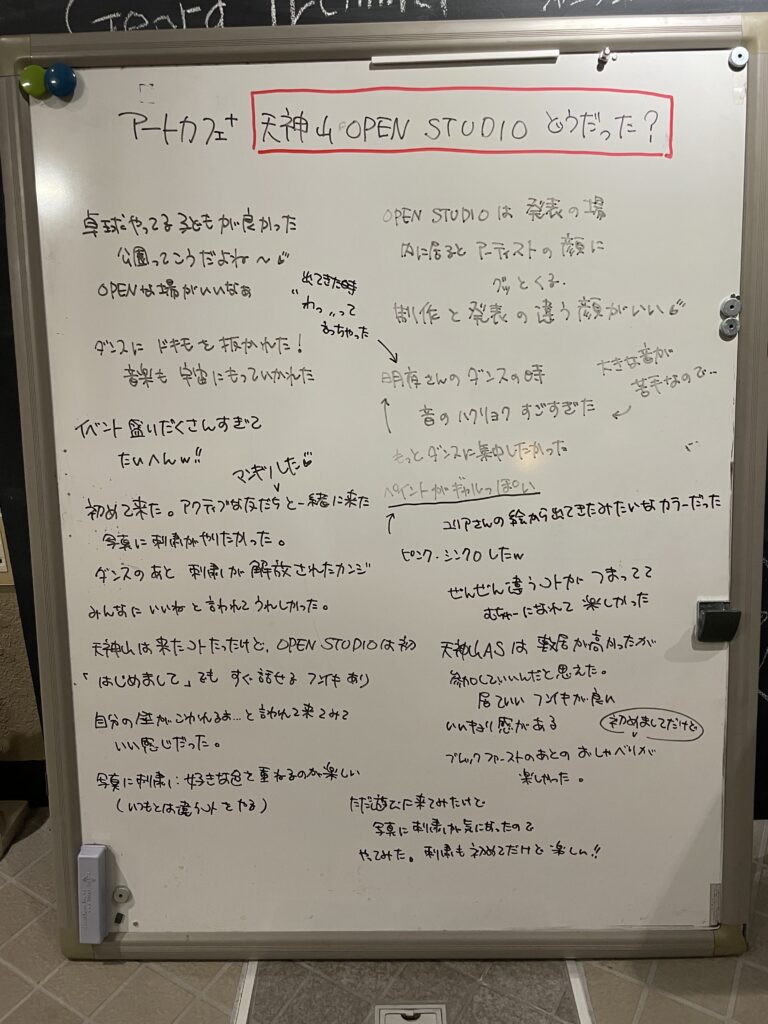 滞在するアーティストが普段どういうことを考え、どんなことをしているのかを知れると同時に、今回は参加者の皆様の声もたくさん集まりました。