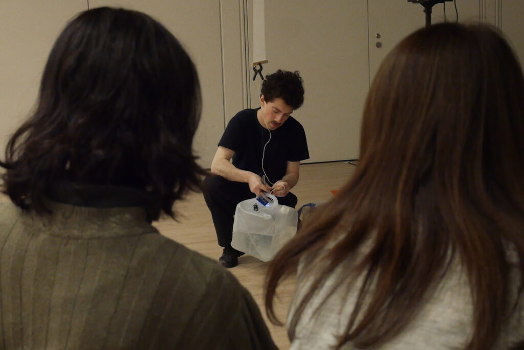 During this event, three artists in residence at Sapporo Tenjinyama Art Studio—Artūras Bumšteinas, Aruanas Grinius, and Gailė Griciūtė—presented their video and sound works.