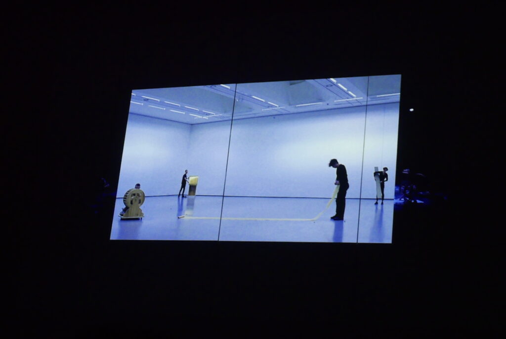 舞台上を行き交うキネティックな音響装置ですが、大型なこともありそれを力いっぱい動かす人々の疲れも感じられて、人が装置に動かされているふうに見えてきます。そうすると、だんだん装置より人のほうが気になり始めます。ふるめかしい装置の技術的クリシェのすきまに、それを取り巻く人間の身体の動きや空間の壮大さを見出す分析能と、それをパフォーマンス作品や映像作品へ展開する手法の独自性。ブムシュテイナスさんの匠みな手腕を感じました。